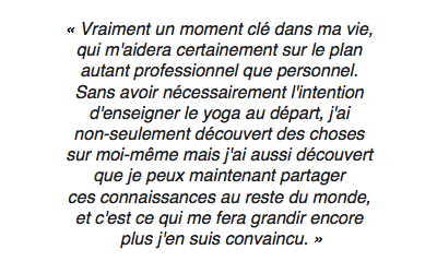 La formation LL et bien complète et m’a permis d’approfondir mes apprentissages à plusieurs niveaux tel que les asanas, l’anatomie, la méditation, et l’anatomie énergétique. Les lectures complémentaires m’ont aussi donné l’opportunité de me refamiliariser avec les bases de la spiritualité hindouiste, tout en ayant une meilleure compréhension du cheminement vers l’état de yoga.